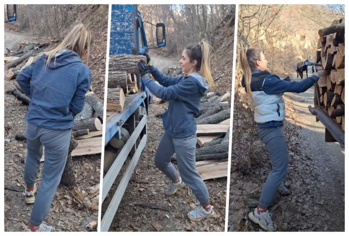Na društvenim mrežama pojavio se video-snimak mlade devojke Sanje koja u šumi ređa drva u čuveni "Tam" kamion.