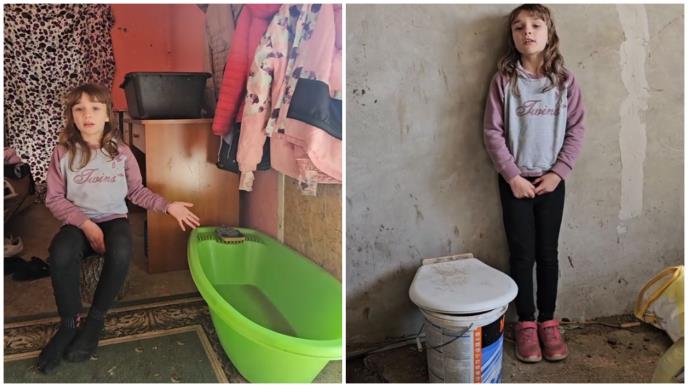 I dok deca njihovih godina roditelje mole za bolji model telefona, Marina i njeni brat i sestra nuždu obavljaju u jednoj kanti na kojoj je postavljena daska.