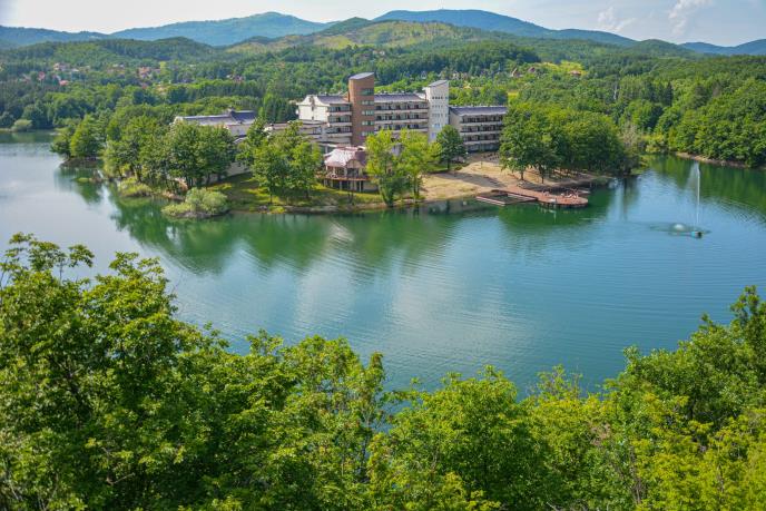 Smešten na samoj obali, ušuškan među borovima i sa pogledom koji odmara oči i dušu, hotel „Jezero" je više od smeštaja - to je mir koji možete naći na oko 200 kilometara od Beograda. Sa 111 luksuznih smeštajnih jedinica, uključujući elegantne apartmane sa pogledom na jezero, hotel može da ugosti do 250 gostiju, pružajući im besprekoran komfor i autentičan dodir prirode.U sklopu hotela, posetioci mogu uživati u panoramskim bazenima, ekskluzivnom restoranu i baru s prostranom terasom, wellness & spa centru sa saunama i masažama, kao i sportskim terenima, kuglani i raznovrsnim rekreativnim sadržajima koji obogaćuju boravak.