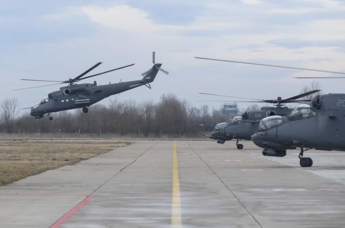 Na vojnom aerodromu „Morava“ u Lađevcima i u neposrednoj okolini pripadnici 714. protivoklopne helikopterske eskadrile iz sastava 98. vazduhoplovne brigade realizuju redovnu letačku obuku na borbenim helikopterima Mi-35.