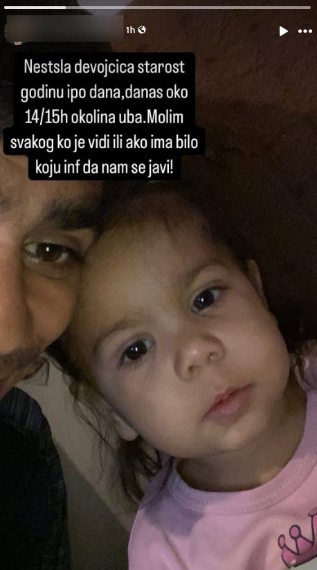 "Dana 3. 3. 2025. godine oko 14.00 časova u Ubu nestala je devojčica starosti 2 godine. Više informacija na pronađime.mup.gov.rs. Sva vaša saznanja javite na 192", navedeno je u poruci.