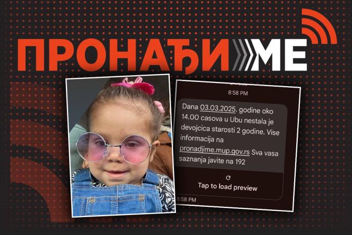 - Dana 03.03.2025. godine oko 14.00 casova u Ubu nestala je devojčica starosti 2 godine. Više informacija na pronađime.mup.gov.rs. Sva vaša saznanja javite na 192 - navedeno je u poruci.