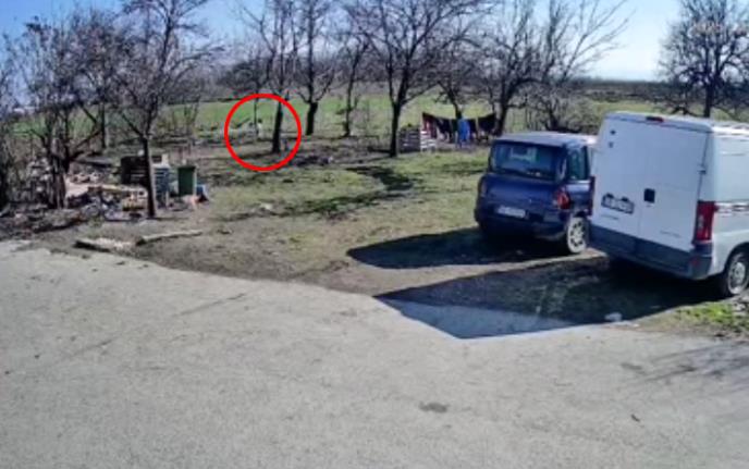 Kako se vidi na snimku, Dunja, obučena u sivu trenerku i duksericu odlazi od kuće, dok se njena braća i sestre igraju ispred kuće.