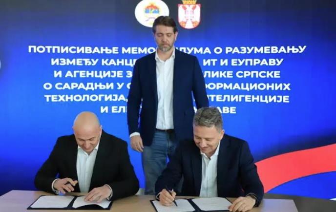 Direktori Kancelarija za informacione tehnologije Srbije i Republike Srpske, dr Mihailo Jovanović i Dražen Višnjić, potpisali su u Državnom data centru u Kragujevcu Memorandum o razumevanju između Kancelarije za informacione tehnologije i elektronsku upravu Republike Srbije i Agencije za informaciono-komunikacione tehnologije Republike Srpske o saradnji u oblasti informacionih tehnologija, veštačke inteligencije i elektronske uprave.