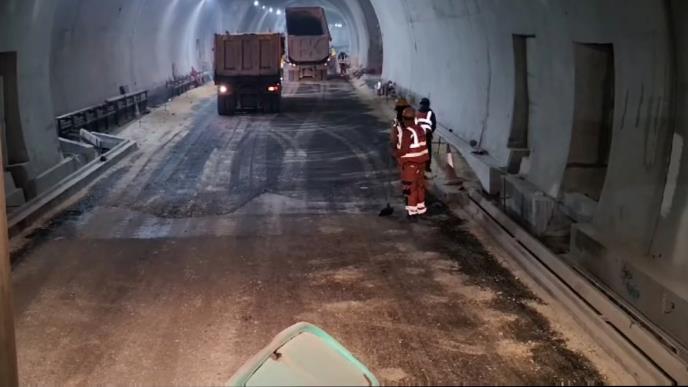 U tunelu Munjino brdo trenutno se radi prvi sloj BNS-a, sa običnim bitumenom u dužini od 800 m, čime će desna cev tunela biti pokrivena prvim slojem. U narednim danima će se raditi i drugi sloj BNS-a do kraja tunela, čime će se završiti asfaltiranje desne tunelske cevi.