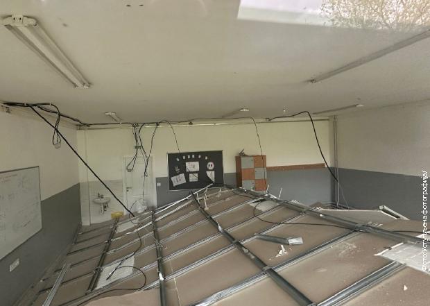 U Osnovnoj školi "Karađorđe" u Saranovu u opštini Rača u toku uskršnjih praznika pao je plafon sa konstrukcijom u jednoj učionici.
