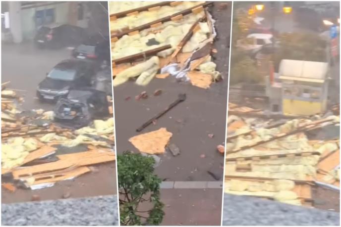 DELOVI ZGRADE RASUTI PO ULICI, SMRSKAN AUTOMOBIL Oluja napravila haos u Mladenovcu, snimak sa lica mesta je strašan! (VIDEO)