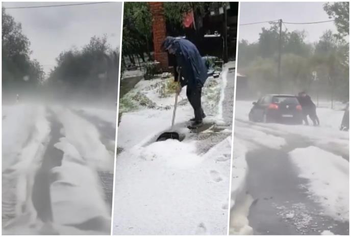 Ovih dana svedoci smo nezabeleženih scena nevremena. Čovek se juče u Topoli zaglavio u ledu! A ono što se desilo u Smederevskoj Palanci dugo će se prepričavati - toliko je leda napadalo da su putevi i dvorišta bukvalno izgledala kao usred zime. Meteorolog Đorđe Đurić kaže da je intenzitet kiše u Palanci bio kao u tajfunu!