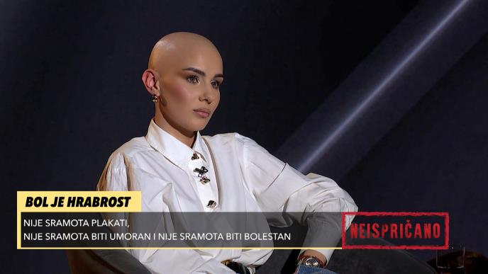 - Ja mislim da je to razlog zato što sam ja zauzela svoj stav. Iz novinarskog ugla, svi smo mi osuđeni na neki način, zbog naše profesije. Kao neko ko je krenuo da snima, susretala sam se sa svakim komentarima. I da ću biti nerotkinja. I da ću umreti.Kako ja mogu da budem srećna? Kako ja mogu da budem sređena ako boli? Ja se ne osećam bolesno. Ja se nikada neću osećati. Meni će ovo biti samo neka faza života koja će da prođe. I samo će mene učiniti boljim čovekom. Nikada se neću osvrtati na to šta je rekao nego ko je rekao. I smatram da generalno mi imamo problem na globalnom nivou što se toga tiče da sebi dajemo mnogo za pravo. Ja sam imala situaciju gde mi je baka, za mene baka, rekla da sam narkomanka i da sam ćelava zato što su mi izbušene ruke od branja i zato što nemam kosu. Ako žena od 60-70 godina sebi daje zapravo da tako komentariše na ulici...