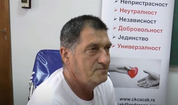 Ovaj čovek iz Čačka, koji nema krov nad glavom, a ni porodicu do sada je, nezvanično, darivao krv oko 130 puta, dok je zvanično zabeleženo blizu 100 davanja, čime se svrstava među najposvećenije dobrovoljne davaoce krvi u Srbiji.