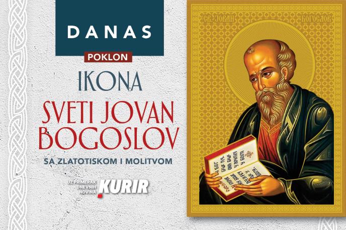 Ne propustite danas – uz vaše omiljene dnevne novine Kurir, darujemo vam ikonu Svetog Jovana Bogoslova. Poklon koji oplemenjuje dom i dušu.