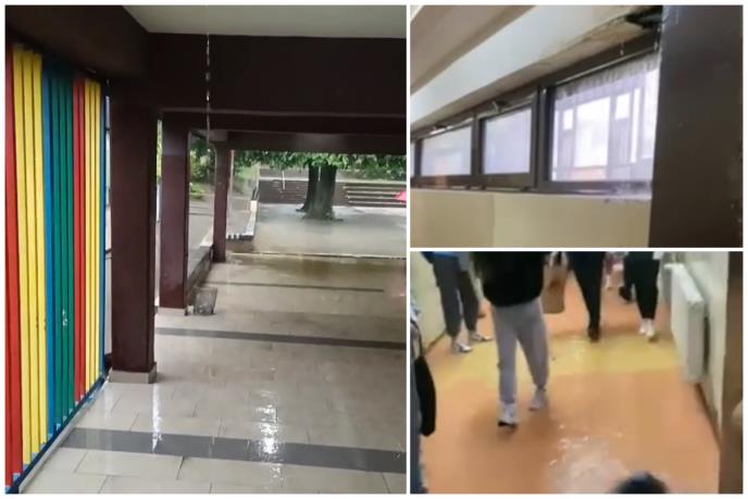 Beogradska osnovna škola "Ujedinjene nacije" na Ceraku juče je bila poplavljena posle olujnog nevremena koje je zadesilo prestonicu! U hodnicima su đaci gazili vodu skoro do članaka, a prokišnjavalo je i u školskom dvorištu.