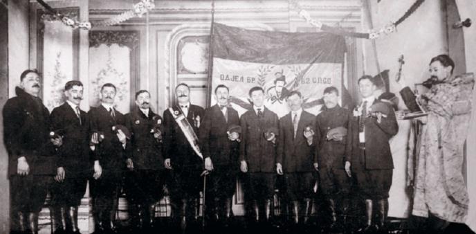 Tom prilikom nastaje ova antologijska slika polaganja zakletve pred sveštenikom u Crkvi Svetog Save u gradu Geriju koji im daje blagoslov pred polazak u odbranu otadžbine.