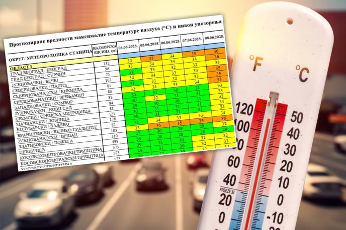 - Očekuje pojava toplotnog talasa na teritoriji južnobanatskog okruga u periodu od 5. do 8. juna. Prognozirane vrednosti maksimalne dnevne temperature vazduha biće u domenu opasne pojave od 5. do 8. juna na teritoriji grada Beograda i južnobanatskog okruga, a 8. juna na području severnobačkog, severnobanatskog, srednjobanatskog i pomoravskog okruga, dok će u kategoriji potencijalno opasne pojave biti u periodu od 4. do 8. juna na severu, istoku i delovima zapadne, centralne i južne Srbije - navodi se na sajtu Instituta.
