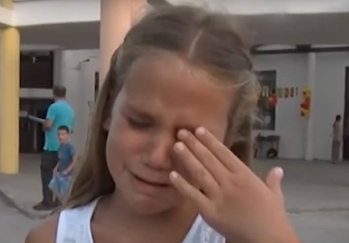 Septembar 2017. godine, devojčica Tina Milutinović, sa urednom frizurom, preplanula u beloj majičici, stoji pred kamerom i briše suze dok govori: