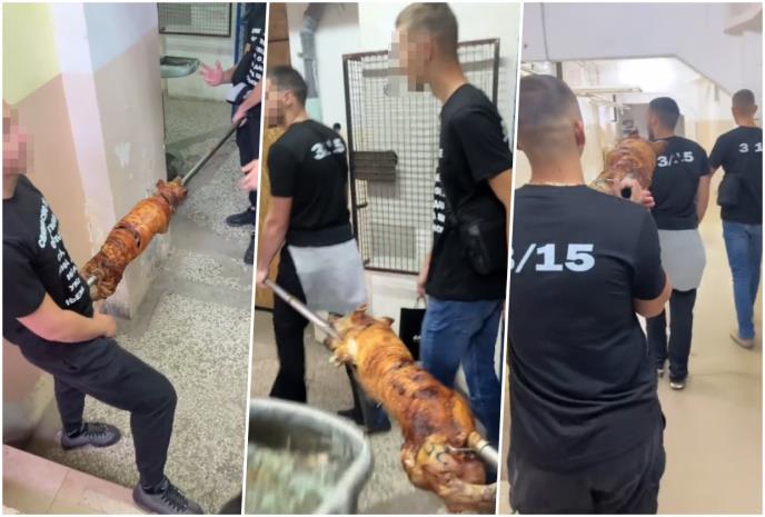 Neobičan video-snimak učenika odeljenja 3/15 na TikToku koji kroz hodnik nose prase na ražnju oduševio je mnoge građane.