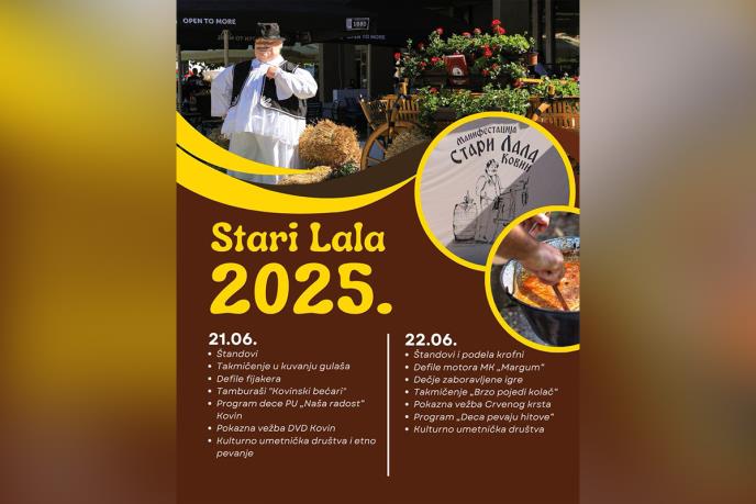 14. Manifestacija „Stari Lala“ održaće se 21. i 22. juna 2025. godine na gradskom trgu u Kovinu.