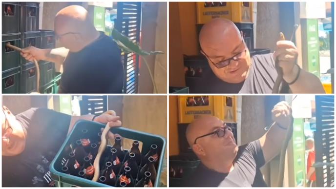 Poznati hvatač zmija iz Vranja, Vladica Stanković, još jednom je pokazao svoje umeće kada je iz jedne gajbe piva izvukao stepskog smuka!