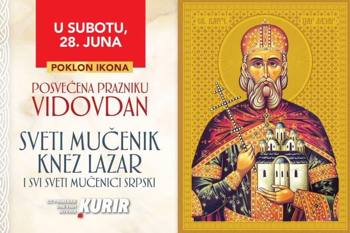 Srpska pravoslavna crkva i svi njeni vernici u subotu, 28. juna, obeležavaju Vidovdan, kao pomen na stradanje Srba i kneza Lazara Hrebeljanovića u bici protiv turske vojske na Kosovu polju 1389. godine. Tim povodom u Kuriru vas čeka ikona Svetog velikomučenika cara Lazara sa zlatotiskom i molitvom.