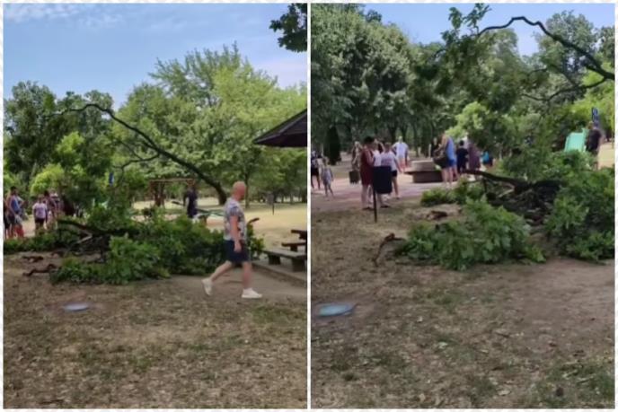 Danas u popodnevnim satima u pančevačkoj Narodnoj bašti odlomila se velika grana sa drveta i pala tik pored mesta na kom su bila i deca.