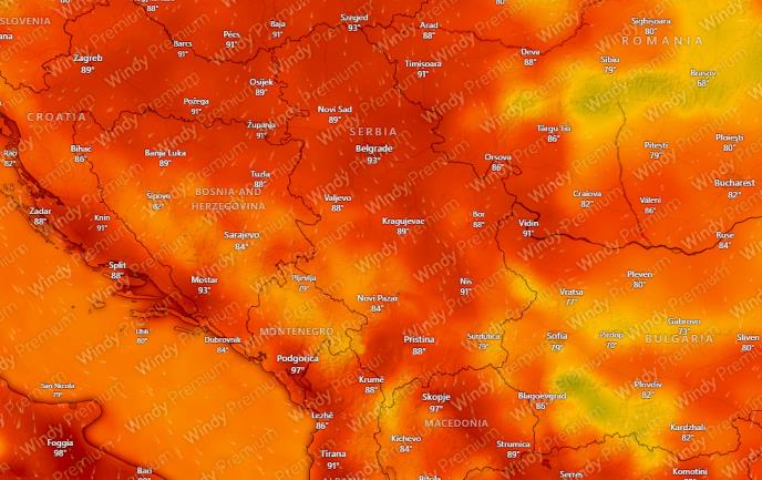 U Pomoravlju, istočnoj, jugoističnoj i jugozapadnoj Srbiji upaljen je crveni meteo-alarm. Najniža temperatura od 16 do 22, a najviša dnevna od 34 do 39 stepeni.