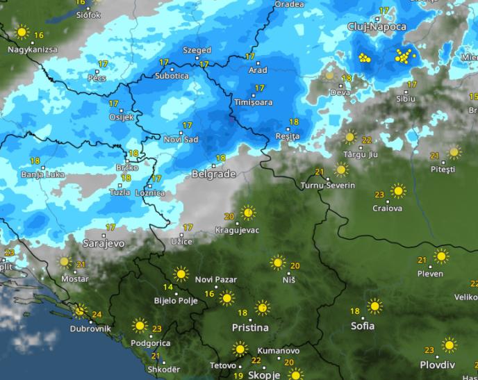 U četvrtak (17.07.) u severnim, zapadnim i centralnim predelima Srbije osetno svežije. Oblačnost sa padavinama će se sporo premeštati preko centralnih krajeva ka jugu i istoku, gde će se veći deo dana i dalje zadržati tollo, a pljuskovi će postati učestaliji i lokalno izraženiji tek kasnije posle podne i uveče.