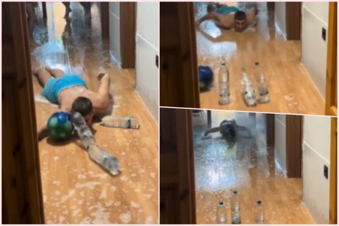 Šokantna je činjenica da pomenuti video ima više od 3,5 miliona pregleda a na snimku se vidi kako klize po podu na stomaku i ruše flaše poređane kao kegle u kuglani?! Sve to vreme, jedan od njih baca vodu na "klizača" kako bi produžio klizanje kao u karlingu?!