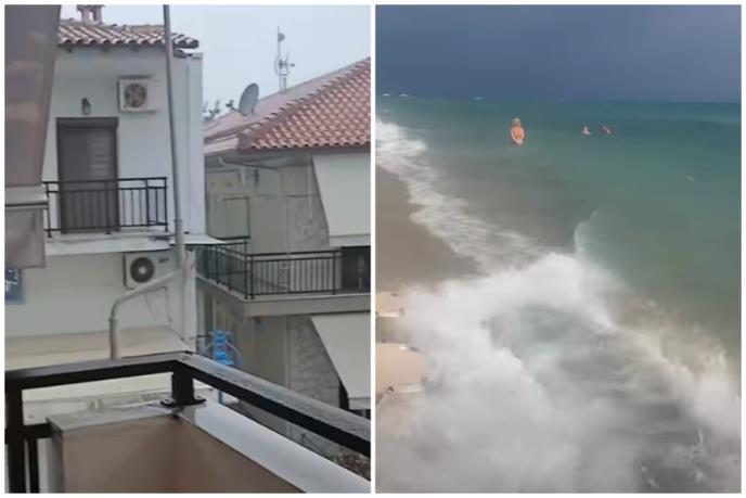 Turiste iz Srbije zateklo je pravo julsko nevreme – snažni talasi zapljusnuli su obale Haniotija, Polihrona i Nea Vrasne, nebo su prekrili crni talasi, a pljuskovi i vetar oterali su turiste sa plaža.