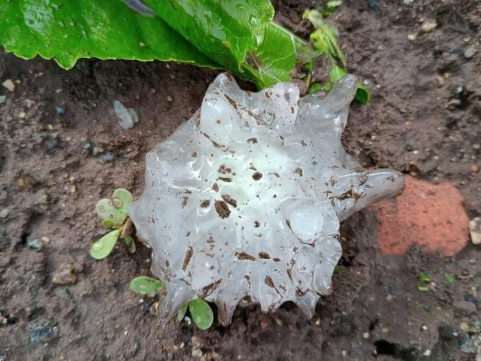 "Prvi današnji izveštaj o krupnom gradu stiže sa Vlasinskog jezera u opštini Surdulica na teritoriji Pčinjskog okruga. Asimetrična zrna grada, sa dominantnim vlažnim rastom, prečnika oko 6 cm, zabeležena su iz superćelije koja je prošla tim područjem", stoji u objavi.