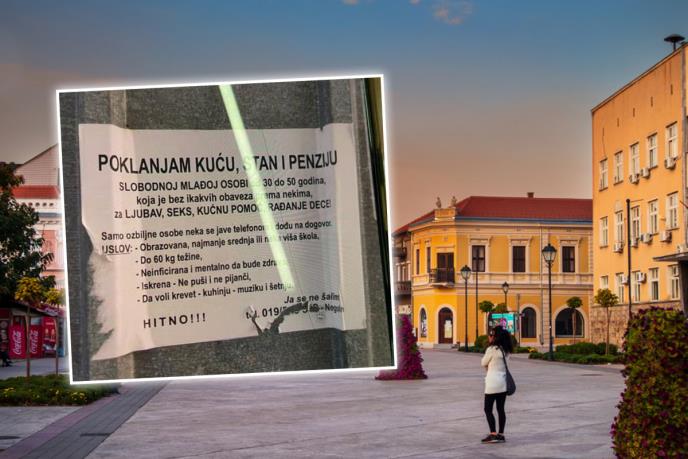 - Poklanjam kuću, stan i penziju. Slobodnoj mlađoj osobi od 30 do 50 godina., koja je bez ikakvih obaveza prema nekima, za ljubav, seksualne odnose, kućnu pomoć, rađanje dece. Samo ozbiljne osobe neka se jave telefonom i dođu na dogovor - stoji u oglasu koji je ponovo aktuelan na društvenim mrežama.