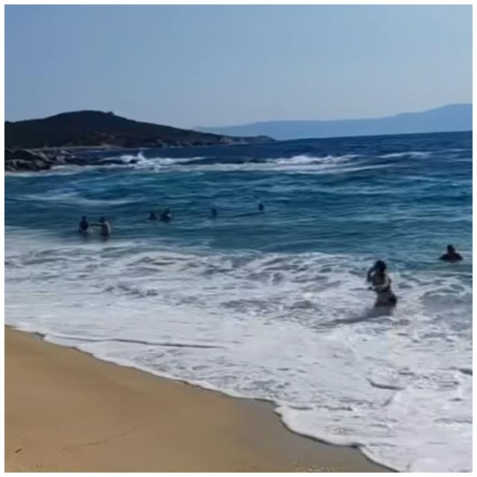 Na popularnoj plaži u Sartiju, na Sitoniji, u Grčkoj bila je nedevano crvena zastavica - jasan znak da kupanje nije bezbedno zbog visokih talasa i jakih struja. Međutim, mnogi turisti su, kako se vidi na snimku koji je zabeležio jedan turista, ovo upozorenje izignorisali i bezbrižno su ulazili u vodu.