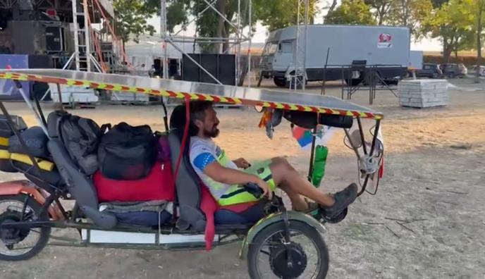 Dalibor Stanković iz Leskovca putuje Evropom na nesvakidašnji način – sopstvenom konstrukcijom električnog tricikla. Vozilo koje je sam modifikovao može da razvije brzinu do 40 kilometara na sat, ali i dalje ima pedale, pa ga Dalibor koristi i kao običan bicikl.