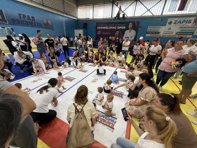 U okviru aktivnosti u Aranđelovcu održana je puzijada za najmlađe, kao i školica za roditelje. Bebe su tom prilikom nagrađena medaljama, poklon paketima i diplomama, a tri najmlađe i auto-sedištima.
