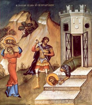 Sveti Jovan je stradao jer je javno osuđivao greh i nemoral cara Galileje Iroda Antipe, koji je živeo sa ženom svog brata. Na nagovor Irodijade, njena kći Saloma je zatražila Jovanovu glavu na tacni, pa je prorok ubijen, a njegovo telo i glava sahranjeni odvojeno.