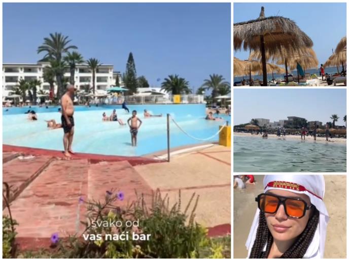 - Da li vredi letovati u Tunisu? Danas vam pokazujem hotel u kojem smo mi bili, plažu i kako to izgleda njihov život van rizorta. Doručak im je bio do 10, tako da smo mi uglavnom ustajali oko 8-9. Raznovrsna je hrana, tako da će svako od vas naći bar po nešto. Ovi bazeni u sklopu rizorta su mi bili najomiljeniji i tu smo provodili najviše vremena. Plaža je peščana i jako je mekana, bukvalno sam se oduševila kad sam pipnula ovaj pesak - ispričala je Teodora.