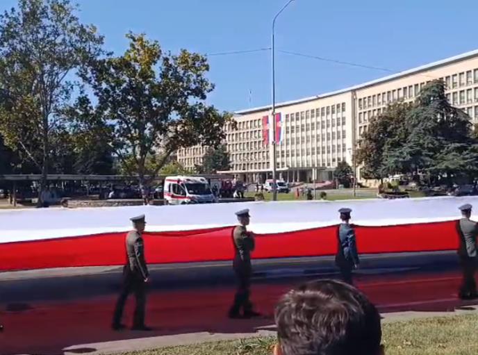Danas se održava velika vojna parada "Snaga jedinstva" ispred Palate Srbija u Beogradu, a pred sam početak je raširena srpska trobojka duga 300 metara.