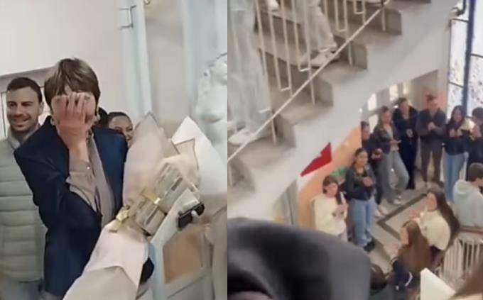 Naime, snimak, podeljen na Instagram stranici "medicinskaks", pokazuje duplu proslavu za jednu profesorku iz Medicinske škole u Kruševcu — kojoj su učenici i kolege priredili iznenađenje povodom rođendana i odlaska u penziju