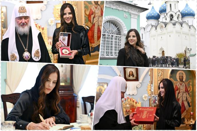 - Počastvovana prilikom da se, na Dan Prepodobnog Sergeja Radonješkog, u lavri Svete Trojice - Sergijeva lavra - sretnem sa Njegovom svetosti patrijarhom moskovskim i cele Rusije Kirilom. Reči hvale i podrške koje je uputio srpskom narodu i mom suprugu učinile su me ponosnom i zahvalnom. Naša dva naroda, tradicionalno bliska, povezana su u istorijskom, duhovnom i kulturnom smislu. Verujem da ćemo nastaviti da razvijamo dobre diplomatske odnose dve zemlje, duge 187 godina...- napisala je Tamara Vučić na Instagramu.