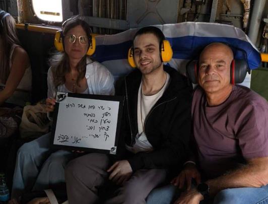Alon Ohel je u rukama držao tablu sa stihovima koji govore koliko je radostan jer se vratio i jer je na slobodi.