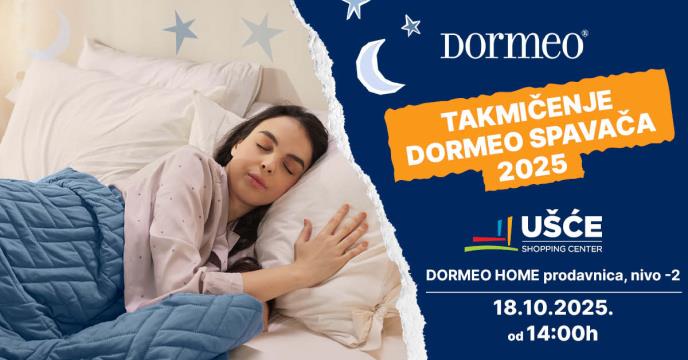 U subotu, 18. oktobra od 14h, ispred Dormeo Home prodavnice u TC Ušće (nivo -2), održaće se veliko finale takmičenja DORMEO SPAVAČ 2025 - događaj u kojem snovi postaju stvarnost, a san pretvara u uzbudljiv izazov!