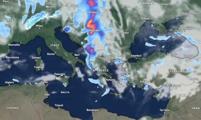 Nakon što je sinoć naše područje bilo najtoplije u Evropi, ove večeri je za 10 stepeni hladnije zahvaljujući prodoru osetno hladnije vazdušne mase sa severa Atlantika preko Alpa.