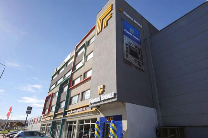 Na 3.000 m2 izložbeno-prodajnog i skladišnog prostora kupcima je predstavljen deo asortimana pločastog i tapaciranog nameštaja Forma Ideale, deo asortimana partnerskog programa, veliki izbor laminata, tepiha, rasvete, dekoracije, bele tehnike, kao i malih kućnih aparata.