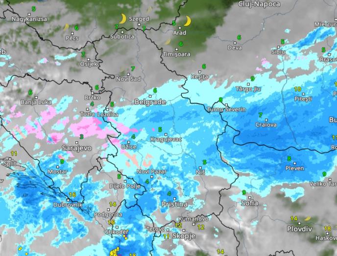 Na sajtu Vreme i Radar videli smo kako će se nevreme kretati iz sata u sat. Intenzivnije padavine prvo će zahvatiti južne i zapadne delove Srbije. Snega će biti na području od granice sa Bosnom i Hercegovinom, preko Mokre Gore, pa sve do Sjenice, a padaće i ledena kiša srednje jakog intenziteta. Padavine se u Beogradu mogu očekivati već oko 19 sati, a u Novom Sadu oko 21 sat.
