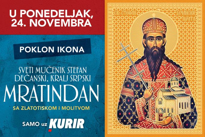 U čast ovog svetitelja i velikog praznika, Kurir u ponedeljak, 24. novembra, svojim čitaocima poklanja prelepu ikonu Svetog kralja Stefana Dečanskog, izrađenu u zlatotisku i obogaćenu molitvom za zaštitu, blagostanje i snagu. Reč je o poklonu koji oplemenjuje dom i donosi duh praznika u svaku kuću.