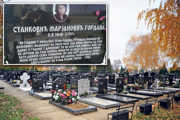 - 36 godina u Nemačkoj puno radila, tugovala, plakala za domovinom, familijom, za svoje koje sam više volela od sebe. Danas tri godine u domovini za koju sam živela kažu da ih mrzim, da sam zlobna žena, to se vidi po mojim očima. Zato dižem sama spomenik, jer oni nisu dužni da takvoj ženi prave spomenik, koja im je nanela toliko zla i pored svega voleću ih i kada budem umrla.
