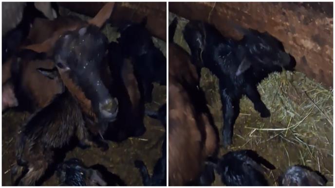 Na snimku koji je brzo privukao pažnju vide se majka koza i njeni mališani - dva potpuno crna i tri šarena jareta - kako se oporavljaju u toploj štali.