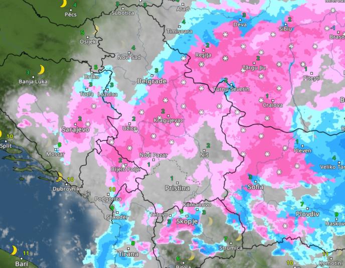 Najviše će se zabeleti viši delovi grada i južni obod Beograda, gde bi palo i do 10 cm snega, prema Avali i Kosmaju lokalno i više.