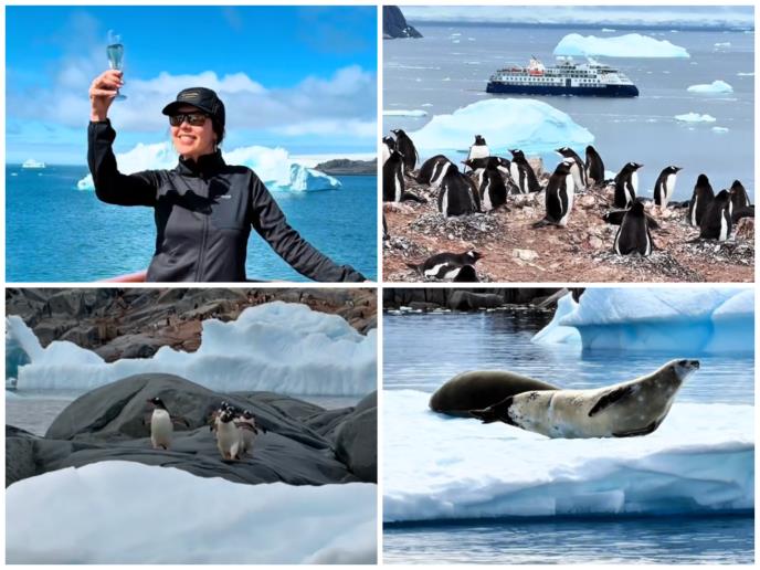 - Kontinent koji nema zvaničnu zastavu jer ga - niko ne poseduje, nije potrebna viza za dolazak jer - pripada svima nama. Kontinent na kome ljudi ne žive, dolaze samo u kraćim vremenskim intervalima da bi ga istraživali. Možda ne žive ljudi, ali zato slobodno žive milioni pingvina, foka, grbavih kitova, orki... Kontinent na kome je trenutno leto, što znači da dan traje 24 sata, sve vreme je svetlo, nema noći - rekla je ona i dodala da je poseta Antarktiku ostvarenje sna koji do pre par godina nije smela ni da sanja.