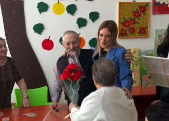 Ona je tokom posete čak i zapevala "Moj Milane" sa bakama, a potom su je korisnici darivali buketom.
