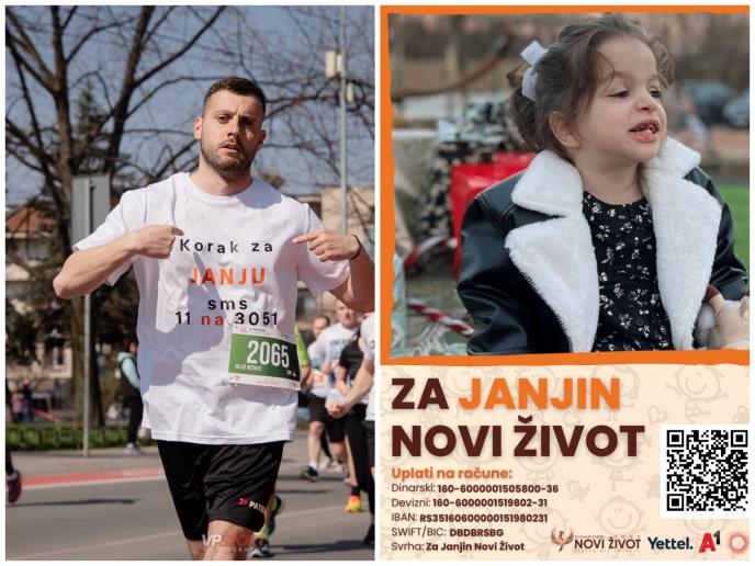 - Njegov cilj je da svojim podvigom dodatno podigne svest javnosti i pomogne da se prikupi novac koji još uvek nedostaje. Nakon velike humanitarne šetnje koju je izveo Janjin brat Jakov, prikupljen je najveći deo sredstava, ali do konačnog cilja ostalo je manje od 15.000 evra - saopštila je Tamara Stojanović, Janjina mama i pozvala sve ljude dobre volje da pruže podršku donacijama, deljenjem informacije ili bodrenjem na ruti.